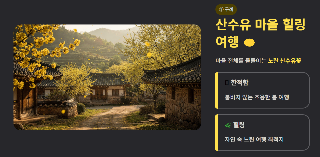 3️⃣ 구례 – 산수유 마을 힐링 여행