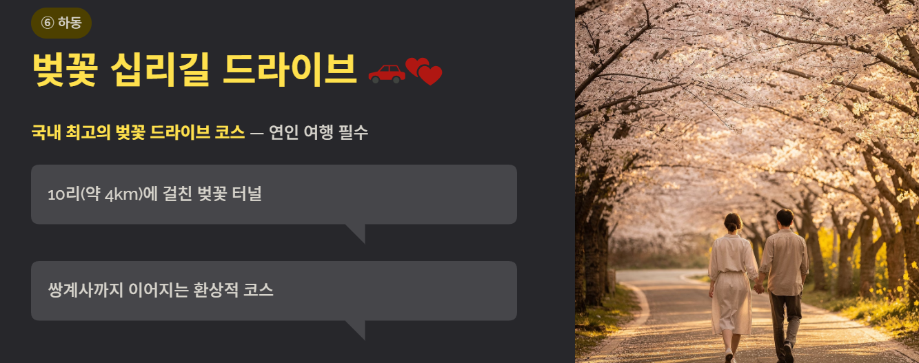 6️⃣ 하동 – 벚꽃 십리길 드라이브