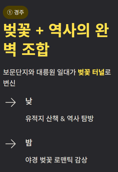 1️⃣ 경주 – 벚꽃과 역사 여행의 완벽 조합